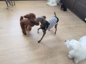 一緒にトレーニング☆パンちゃんをお手本に、しっかり見ていたベルちゃんでした^^