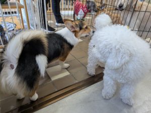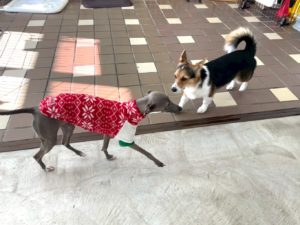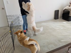 珍しいコンビでお散歩♪夜月くんは久しぶりの立て待て、レオくんは久しぶりなので復習をがんばりました!